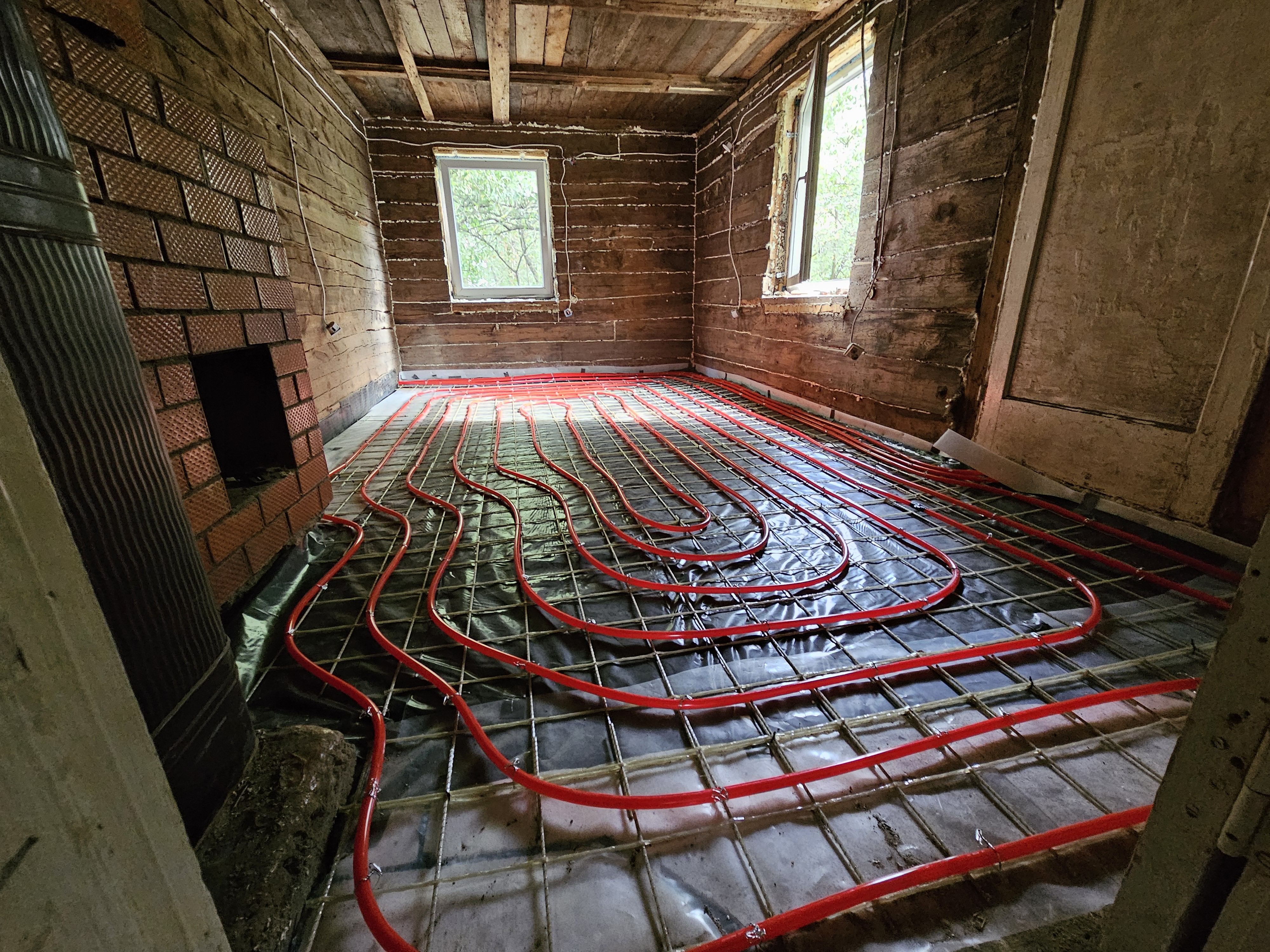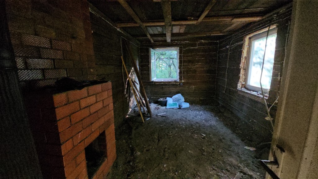 In retrospect the hardest job was digging up the floors, which was full of dirt, rocks the size of my dog, old fireplace bricks, broken glass, old boots, lots of metal horseshoes,,, you name it it was all there. But it needed to be done in order for us to put in an air-water pump floor heating so we would not have to heat our house with fireplaces during the cold winters.