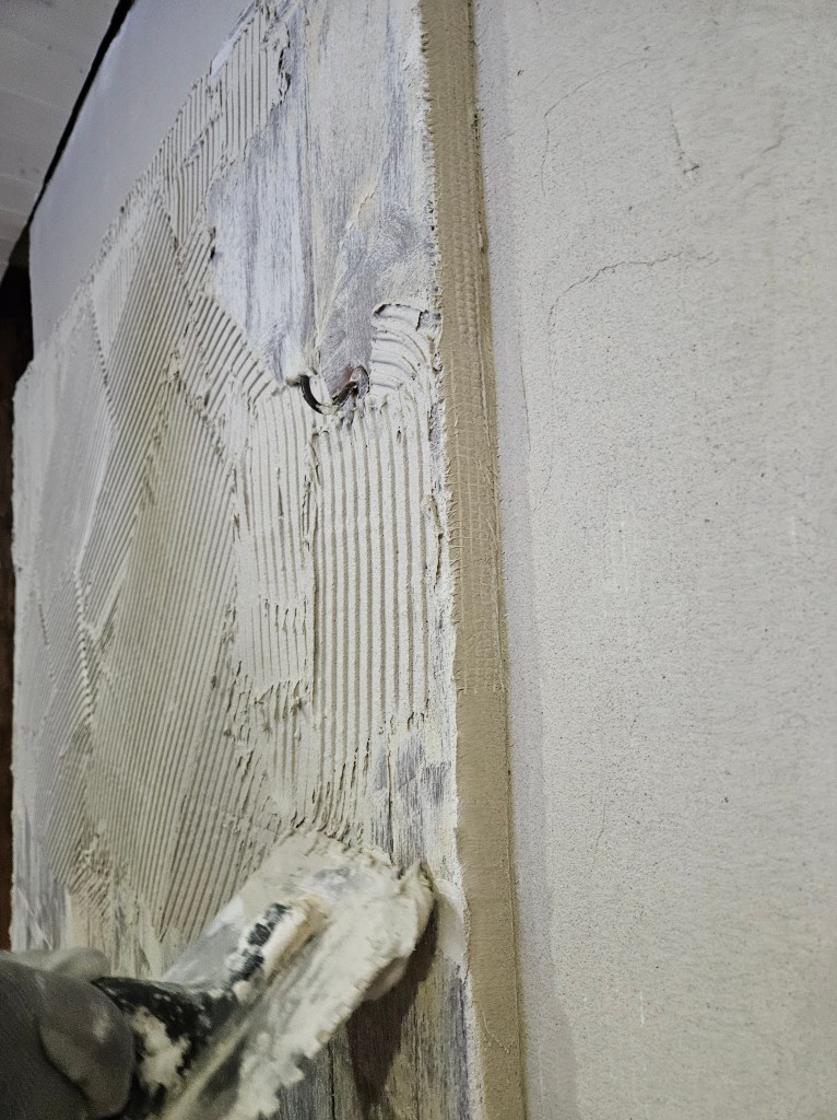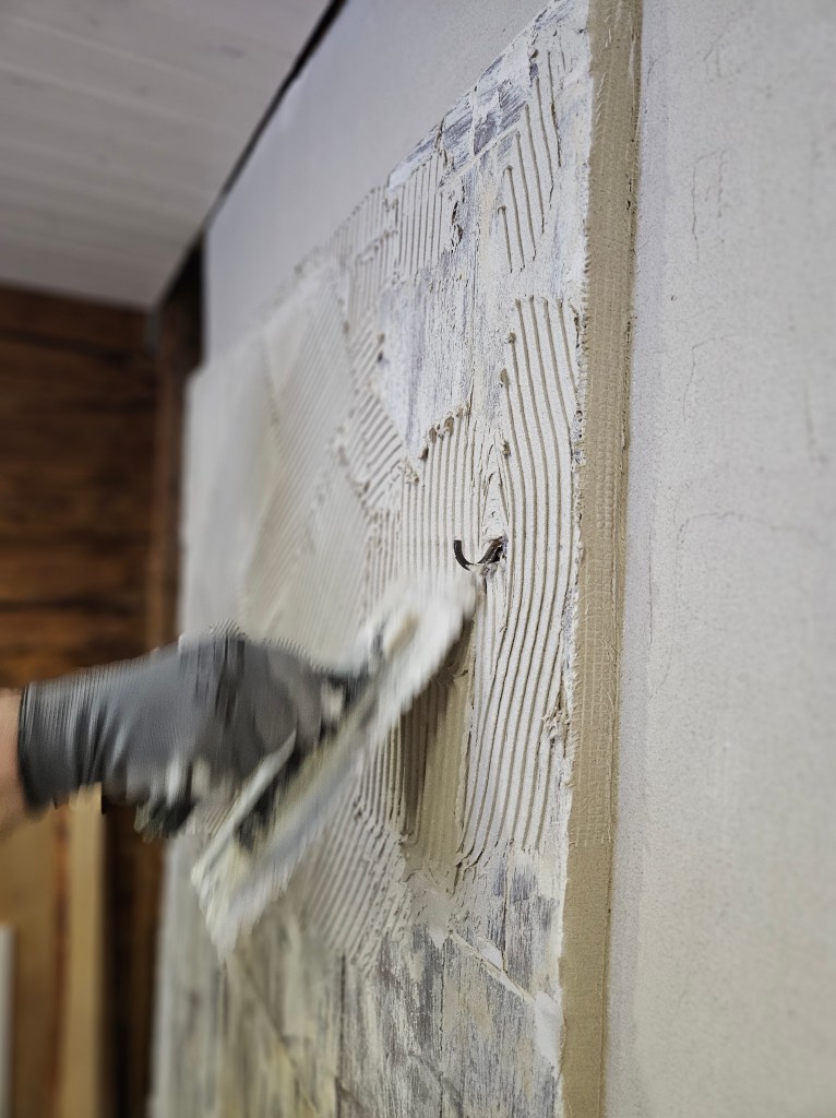 I absolutely hated the old red brick fireplace we had in our current bedroom and wanted something more suiting to our old cottage. The first thought was to paint it white,, but that would still look like a brick fireplace which i did not like,, thankfully I have an amazing dad who suggested we plaster it and add the same small bricks as decoration as we did with the warm wall of our kitchen fireplace. I thought it would be too hard to do but turns out is is quite simple, just time consuming. Having to do multiple layers of glue, plaster, mesh sheet and another plaster layer with a final layer of white paint. Each layer taking 24 hours to dry before the next layer could be added. But i dare say the few days of work was absolutely worth it. The fireplace looks so much fresher and I cannot wait to find a perfect door or a mesh protection to finish it off. If you have any ideas on that department then let me know !